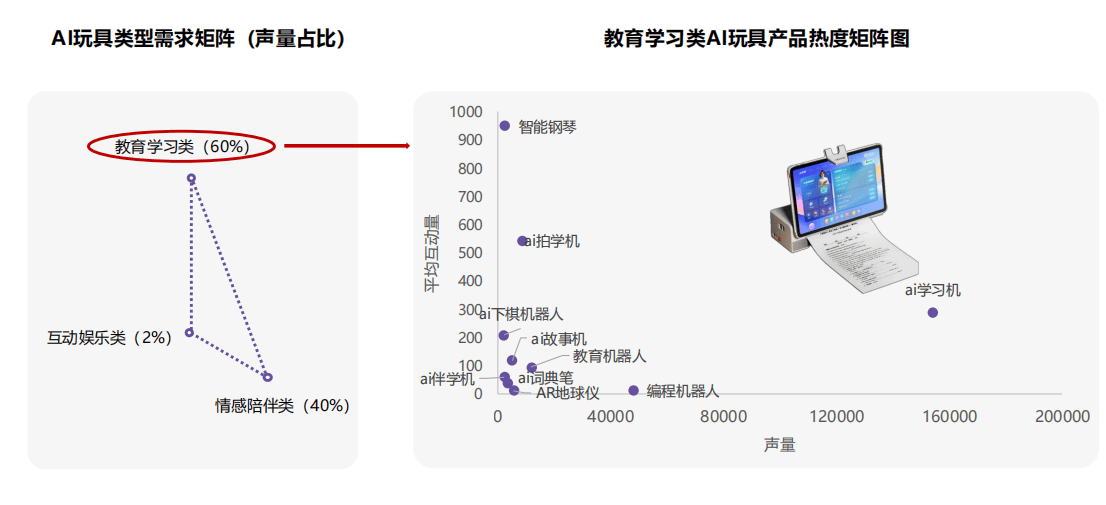 AI玩具社媒声量于2025年送来迸发,取保守的玩具产物比拟,AI玩具搭载大模子,此中,取此同时,用户对于AI玩具的焦点是高效、治愈取风趣,此中,2019年,此中教育机械人是绝对从导。以补位日常照应取平安监护。指向其智能体验的现存短板及不落地的需求导向。桌面陪同机械人则以玲珑、便携的外形供给给随时随地的深度陪同取感情支撑。教育进修类产物是关心的焦点引擎