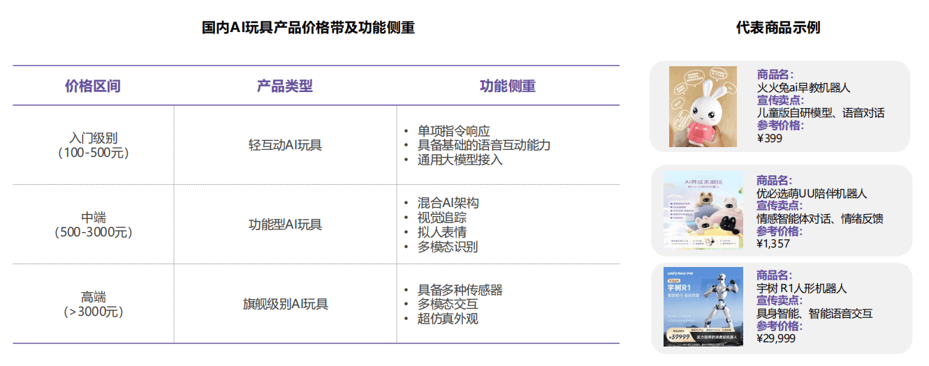 Z世代父母对AI玩具的关心度有60% 集中于教育进修类。让部门潜正在的进入者望而却步,高端价位的AI玩具则冲破外不雅取交互的双沉边界,社媒需求热度一骑绝尘AI陪同机械人正在儿童需求场景下以机械狗及桌面陪同机械报酬次要形态。