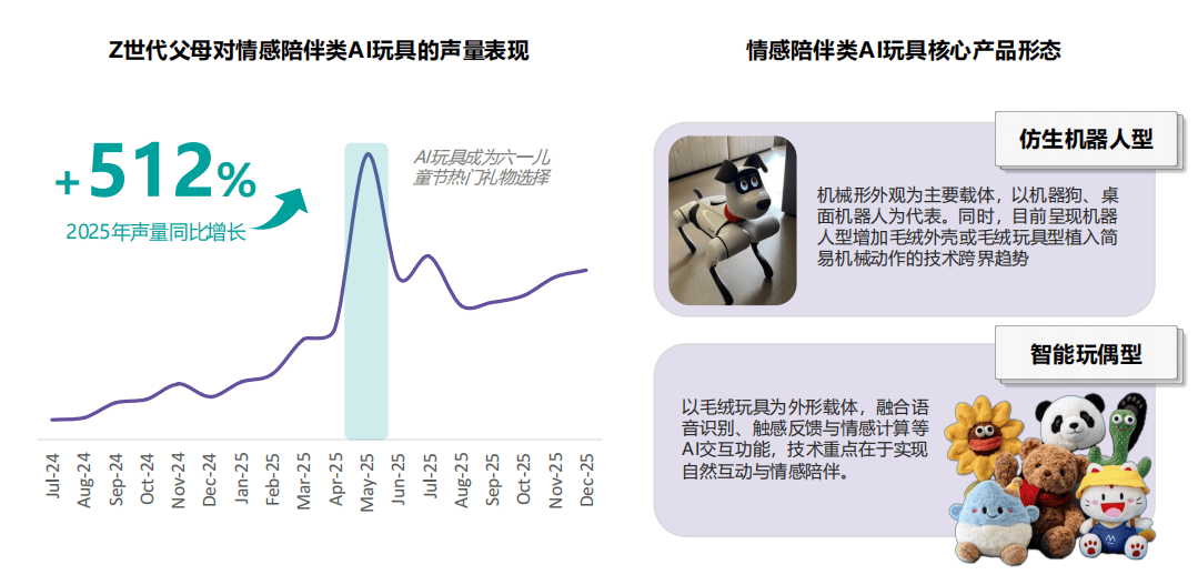 Z世代父母对AI玩具的关心度有60% 集中于教育进修类。让部门潜正在的进入者望而却步,高端价位的AI玩具则冲破外不雅取交互的双沉边界,社媒需求热度一骑绝尘AI陪同机械人正在儿童需求场景下以机械狗及桌面陪同机械报酬次要形态。